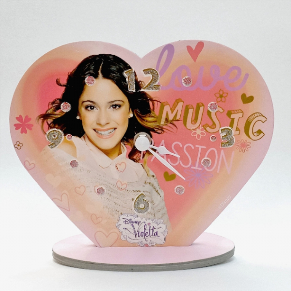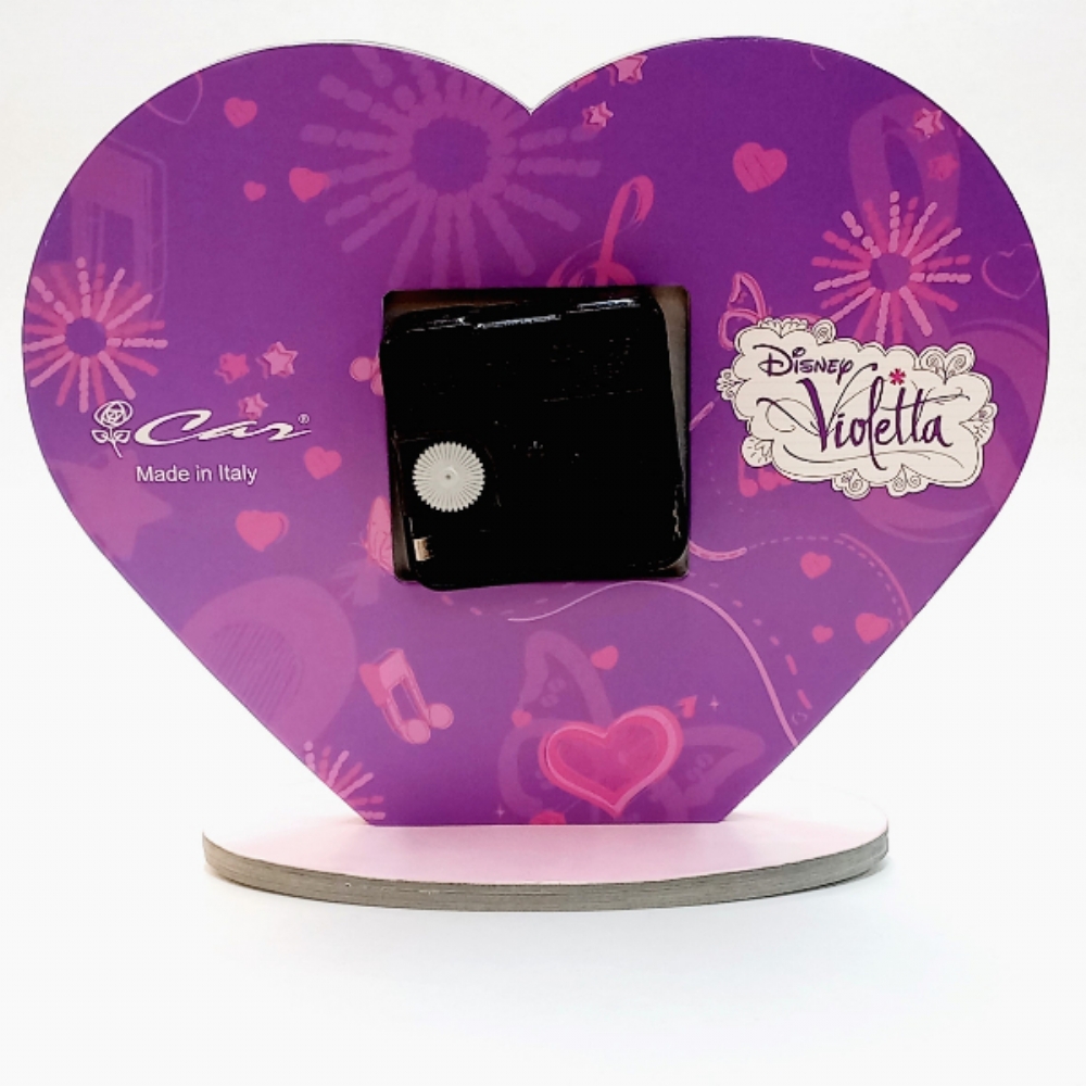 Orologio in cartoncino a forma di cuore personalizzato con immagine di Violetta.